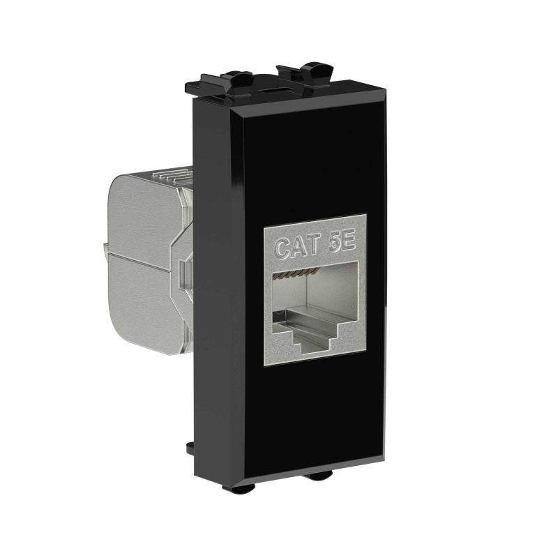 Компьютерная розетка экранированная без шторки используется для подключения компьютерной техники и соединения с патч-панелью, предназначена для комплектации систем организации рабочих мест (кабель-каналов, лючков, башенок, колонн). Розетка RJ-45 категории 5е может использоваться для организации сетей с частотой до 125 МГц и скоростью до 1000 Мбит/с. Материал розетки – металл, термопласт. 1 модуль. Пластиковые детали изделия выполнены в цвете "Черный квадрат".