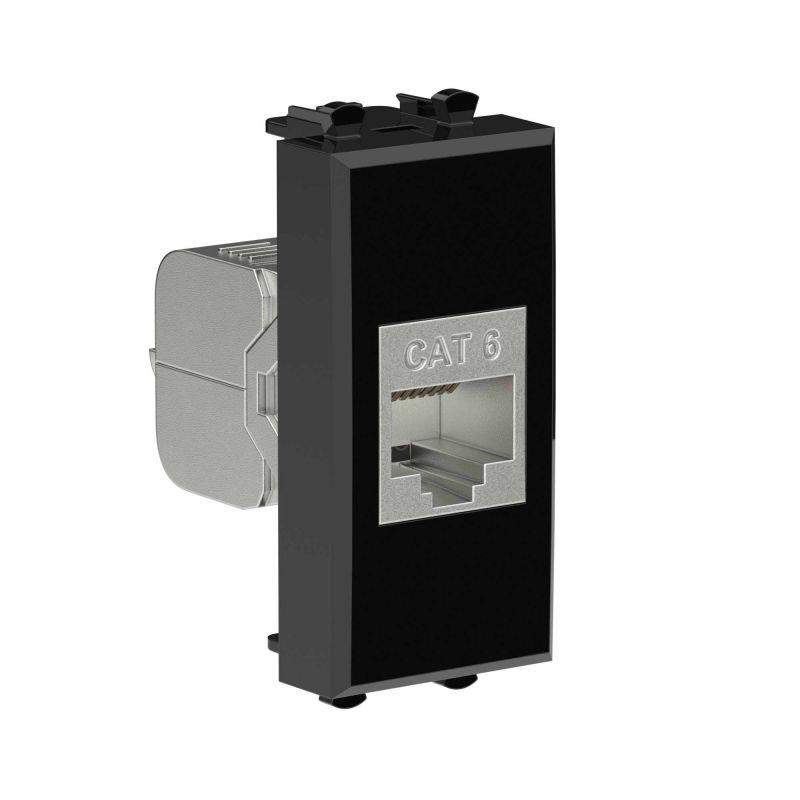 Компьютерная розетка экранированная используется для подключения компьютерной техники и соединения с патч-панелью, предназначена для комплектации систем организации рабочих мест (кабель-каналов, лючков, башенок, колонн). Розетка RJ-45 категории 6 может использоваться для организации сетей с частотой до 250 МГц и передавать данные на большие расстояния. Материал розетки – металл, термопласт. Пластиковые детали изделия выполнены в цвете "Черный квадрат".