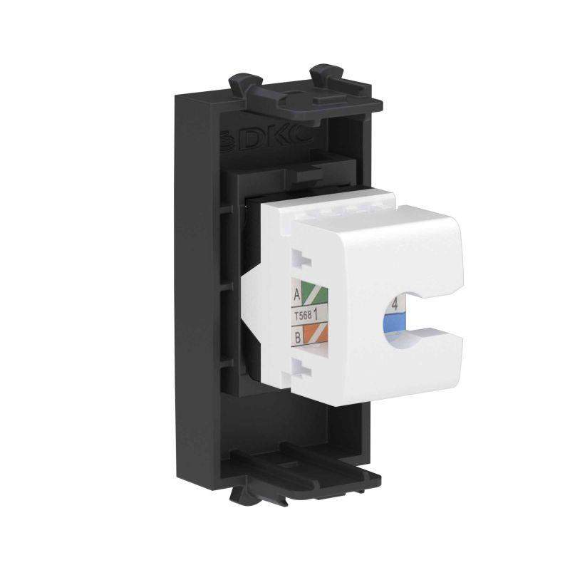 Компьютерная розетка без шторки используется для подключения компьютерной техники и соединения с патч-панелью, предназначена для комплектации систем организации рабочих мест (кабель-каналов, лючков, башенок, колонн). Розетка RJ-45 категории 6A может использоваться для организации сетей с частотой до 500 МГц и передавать данные до 10 Гбит/с. Материал розетки – металл, термопласт. 1 модуль. Пластиковые детали изделия выполнены в цвете "Черный матовый".