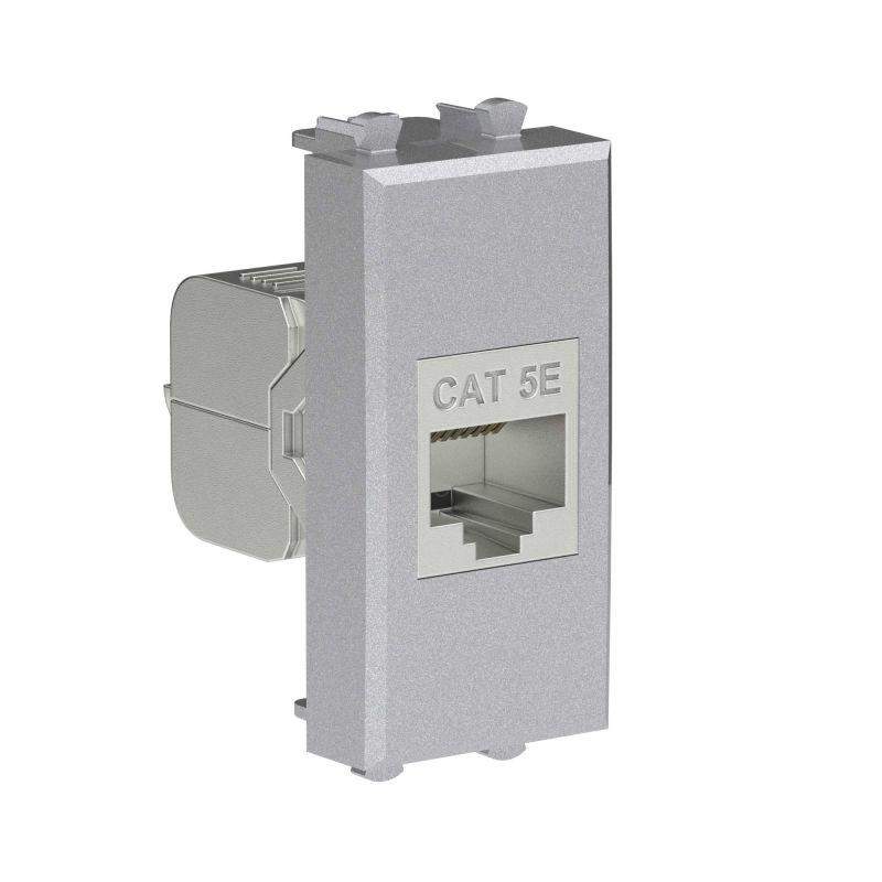 Компьютерная розетка экранированная без шторки используется для подключения компьютерной техники и соединения с патч-панелью, предназначена для комплектации систем организации рабочих мест (кабель-каналов, лючков, башенок, колонн). Розетка RJ-45 категории 5е может использоваться для организации сетей с частотой до 125 МГц и скоростью до 1000 Мбит/с. Материал розетки – металл, термопласт. 1 модуль. Пластиковые детали изделия выполнены в цвете "Закаленная сталь".