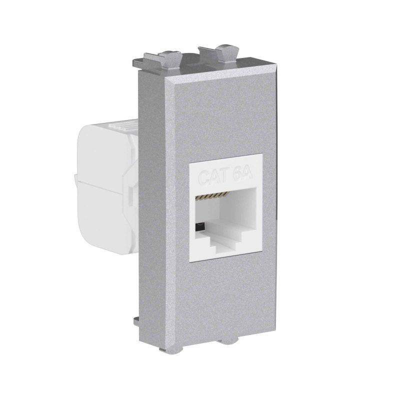 Компьютерная розетка без шторки используется для подключения компьютерной техники и соединения с патч-панелью, предназначена для комплектации систем организации рабочих мест (кабель-каналов, лючков, башенок, колонн). Розетка RJ-45 категории 5е может использоваться для организации сетей с частотой до до 500 МГц и передавать данные до 10 Гбит/с. Материал розетки – металл, термопласт. 1 модуль. Пластиковые детали изделия выполнены в цвете "Закаленная сталь".