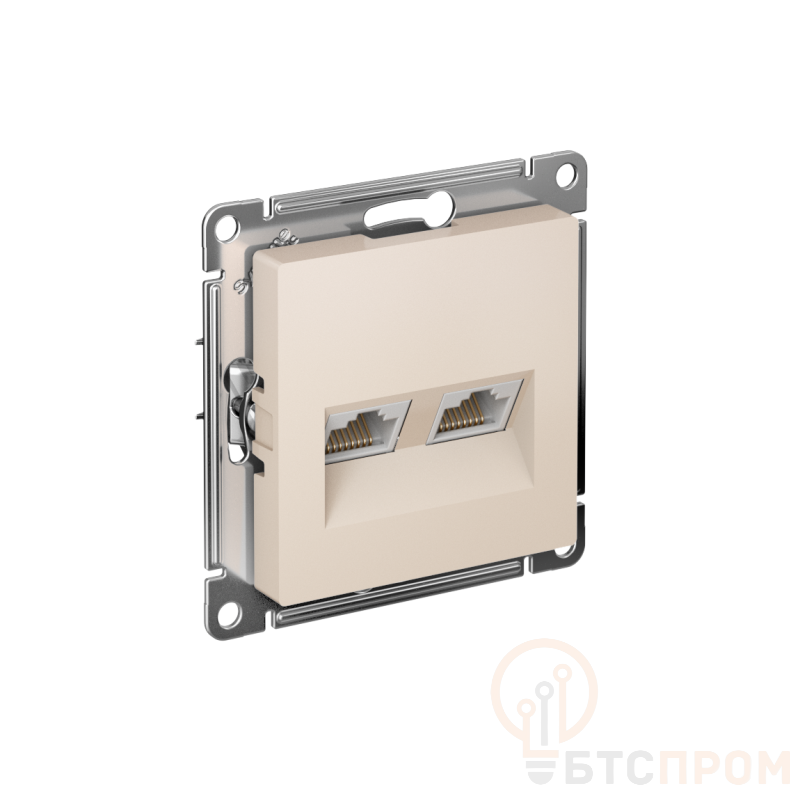 Механизм Systeme Electric (ранее Schneider Electric) серии AtlasDesign в бежевом цвете двойной розетки компьютерной с разъёмом RJ45 категория 5е предназначен для удобного и быстрого подключения вашего компьютера к локальной вычислительной сети. - Лицевые детали из качественного ABS-пластика, устойчивого к царапинам и УФ-излучению. - Усиленные прямые монтажные лапки для лучшей фиксации механизма в монтажной коробке.