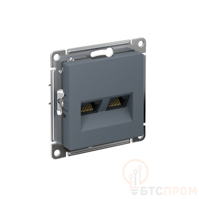 Механизм Systeme Electric (ранее Schneider Electric) серии AtlasDesign в цвете грифель двойной розетки компьютерной с разъёмом RJ45 категория 5е предназначен для удобного и быстрого подключения вашего компьютера к локальной вычислительной сети. - Лицевые детали из качественного ABS-пластика, устойчивого к царапинам и УФ-излучению. - Усиленные прямые монтажные лапки для лучшей фиксации механизма в монтажной коробке.