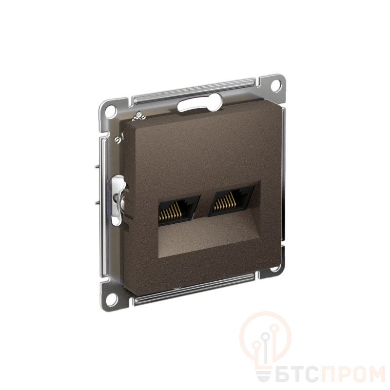 Механизм Systeme Electric (ранее Schneider Electric) серии AtlasDesign в цвете мокко двойной розетки компьютерной с разъёмом RJ45 категория 5е предназначен для удобного и быстрого подключения вашего компьютера к локальной вычислительной сети. - Лицевые детали из качественного ABS-пластика, устойчивого к царапинам и УФ-излучению. - Усиленные прямые монтажные лапки для лучшей фиксации механизма в монтажной коробке.