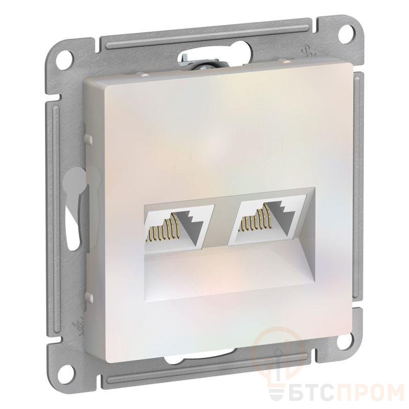Механизм Systeme Electric (ранее Schneider Electric) серии AtlasDesign в цвете жемчуг двойной розетки компьютерной с разъёмом RJ45 категория 5е предназначен для удобного и быстрого подключения вашего компьютера к локальной вычислительной сети. - Лицевые детали из качественного ABS-пластика, устойчивого к царапинам и УФ-излучению. - Усиленные прямые монтажные лапки для лучшей фиксации механизма в монтажной коробке.