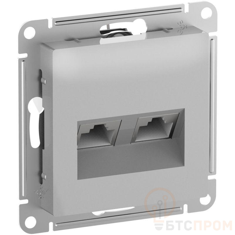 Механизм Systeme Electric (ранее Schneider Electric) серии AtlasDesign в цвете алюминий двойной розетки компьютерной с разъёмом RJ45 категория 6А предназначен для удобного и быстрого подключения вашего компьютера к локальной вычислительной сети. - Обладает высокой скоростью передачи данных до 10 Гбит/с, диапазон частоты до 500 МГц. - Лицевые детали из качественного ABS-пластика, устойчивого к царапинам и УФ-излучению. - Усиленные прямые монтажные лапки для лучшей фиксации механизма в монтажной коробке.