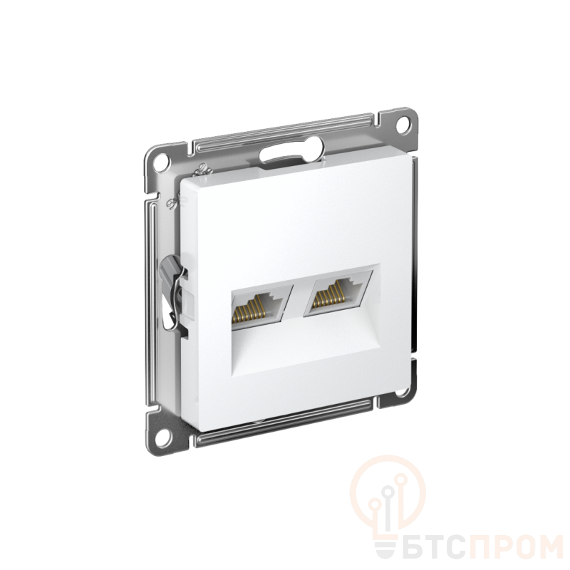 Механизм Systeme Electric (ранее Schneider Electric) серии AtlasDesign в цвете белый двойной розетки компьютерной с разъёмом RJ45 категория 6А предназначен для удобного и быстрого подключения вашего компьютера к локальной вычислительной сети. - Обладает высокой скоростью передачи данных до 10 Гбит/с, диапазон частоты до 500 МГц. - Лицевые детали из качественного ABS-пластика, устойчивого к царапинам и УФ-излучению. - Усиленные прямые монтажные лапки для лучшей фиксации механизма в монтажной коробке.