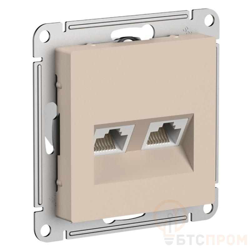 Механизм Systeme Electric (ранее Schneider Electric) серии AtlasDesign в цвете ПЕСОЧНЫЙ двойной розетки компьютерной с разъёмом RJ45 категория 5е предназначен для удобного и быстрого подключения вашего компьютера к локальной вычислительной сети. - Лицевые детали из качественного ABS-пластика, устойчивого к царапинам и УФ-излучению. - Усиленные прямые монтажные лапки для лучшей фиксации механизма в монтажной коробке.