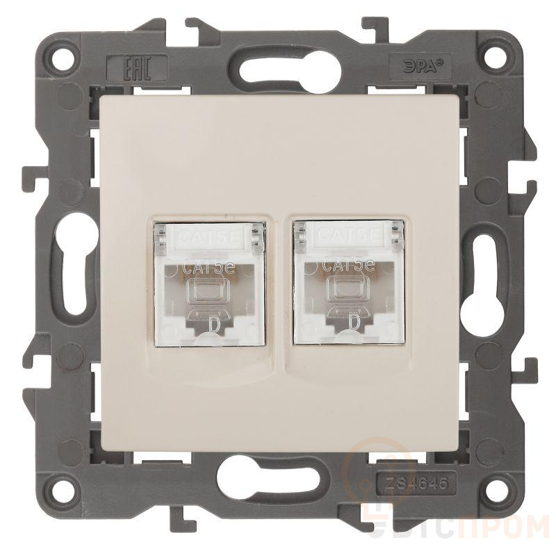 Розетка информационная двойная 2XRJ45 серии Эра Elegance скрытой установки цвет слоновая кость 14-3108-02. Выполенена из поликарбоната.
