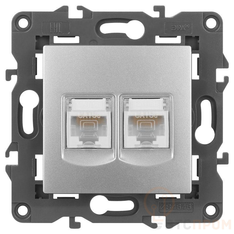 Розетка информационная двойная 2XRJ45 серии Эра Elegance скрытой установки цвет алюминий 14-3108-03. Выполенена из поликарбоната.