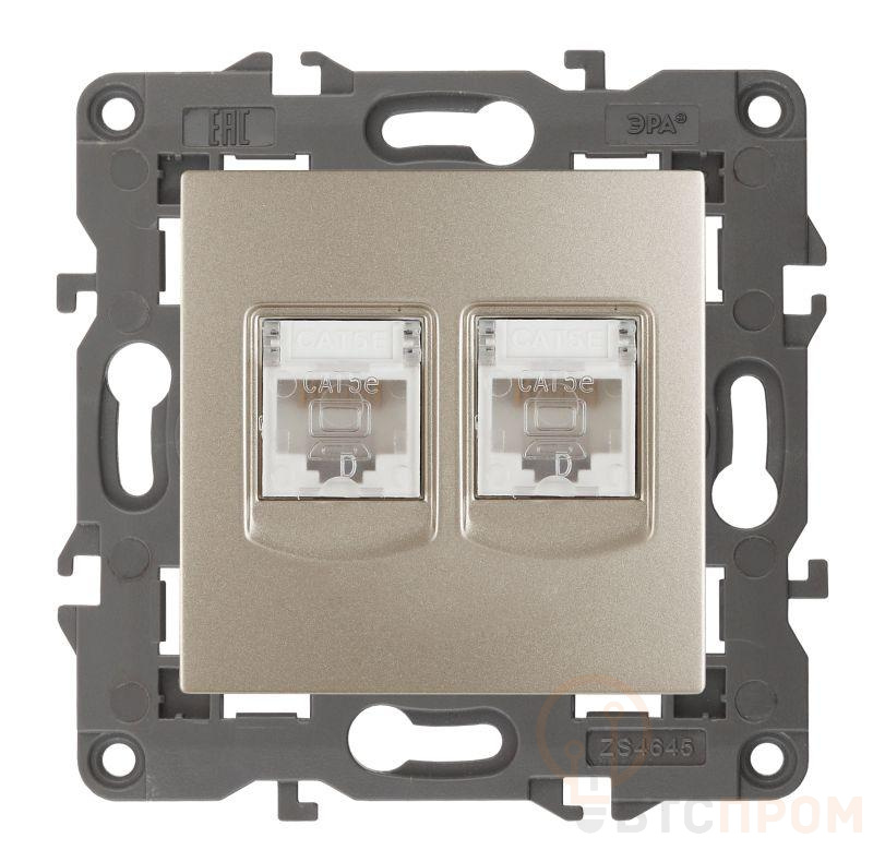 Розетка информационная двойная 2XRJ45 серии Эра Elegance скрытой установки цвет шампань 14-3108-04. Выполенена из поликарбоната.