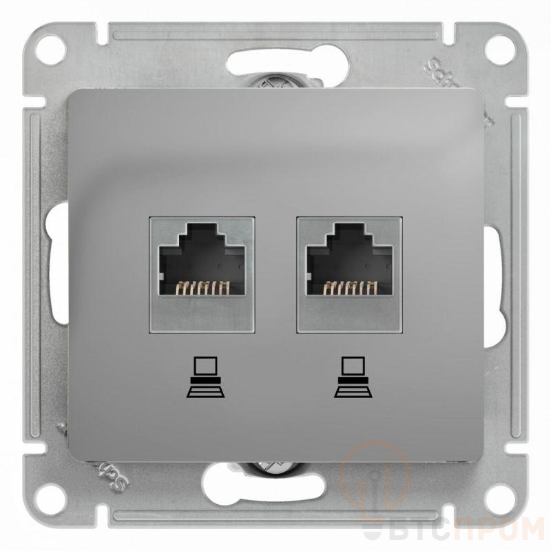 Механизм Systeme Electric (ранее Schneider Electric) серии Glossa (цвет алюминий) двойной розетки компьютерной с разъёмом RJ45 категория 5е предназначен для удобного и быстрого подключения вашего компьютера к компьютерной сети. - Выполнен из материала PС+ASA, стойкого к УФ-излучению и появлению царапин.