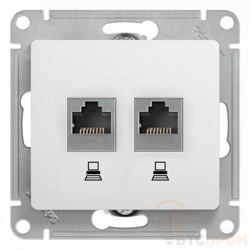 Механизм Systeme Electric (ранее Schneider Electric) серии Glossa (цвет белый) двойной розетки компьютерной с разъёмом RJ45 категория 5е предназначен для удобного и быстрого подключения вашего компьютера к компьютерной сети. - Выполнен из материала PС+ASA, стойкого к УФ-излучению и появлению царапин.