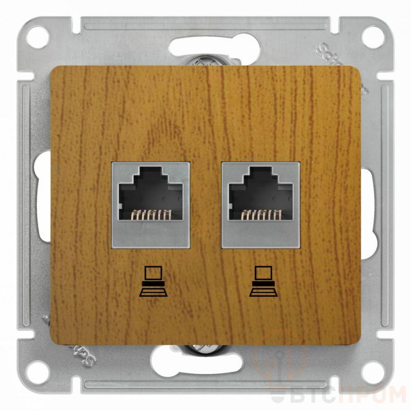 Механизм Systeme Electric (ранее Schneider Electric) серии Glossa (цвет дерево дуб) двойной розетки компьютерной с разъёмом RJ45 категория 5е предназначен для удобного и быстрого подключения вашего компьютера к компьютерной сети. - Выполнен из материала PС+ASA, стойкого к УФ-излучению и появлению царапин.