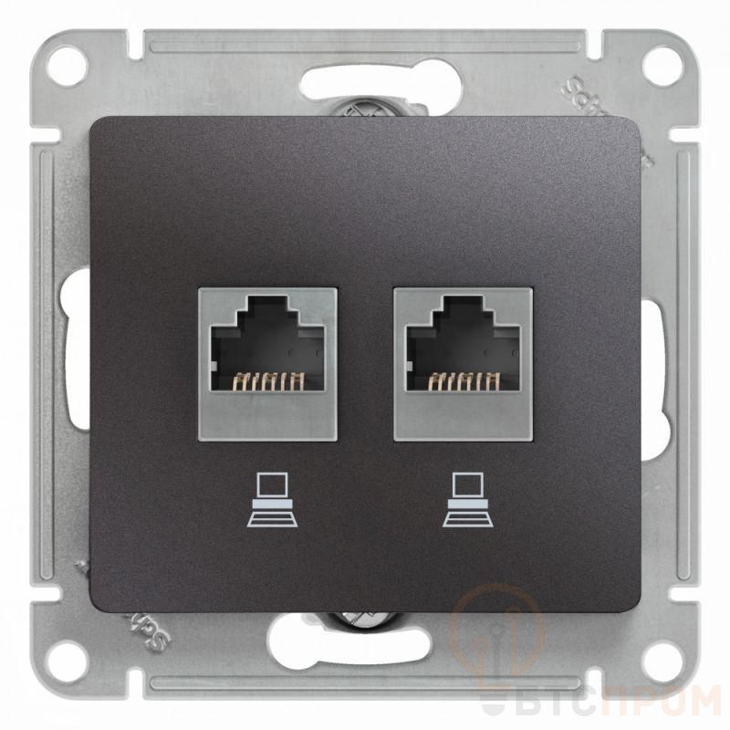 Механизм Systeme Electric (ранее Schneider Electric) серии Glossa (цвет графит) двойной розетки компьютерной с разъёмом RJ45 категория 5е предназначен для удобного и быстрого подключения вашего компьютера к компьютерной сети. - Выполнен из материала PС+ASA, стойкого к УФ-излучению и появлению царапин.
