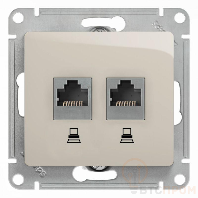 Механизм Systeme Electric (ранее Schneider Electric) серии Glossa (цвет молочный) двойной розетки компьютерной с разъёмом RJ45 категория 5е предназначен для удобного и быстрого подключения вашего компьютера к компьютерной сети. - Выполнен из материала PС+ASA, стойкого к УФ-излучению и появлению царапин.