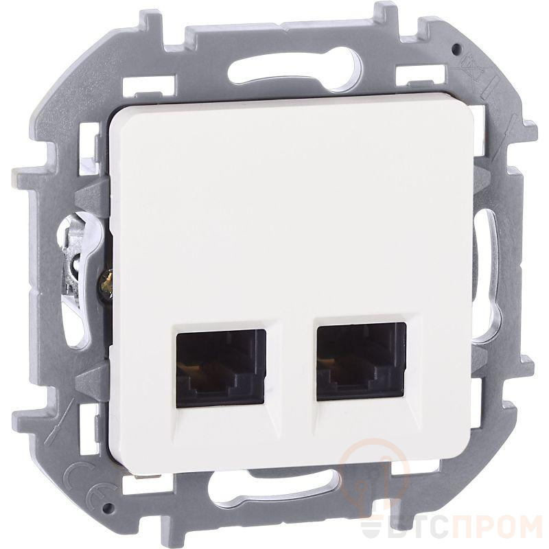 Розетка компьютерная двойная для скрытого монтажа Inspiria, 2 разъема RJ45 категория 5е UTP, цвет "Белый". Предназначена для быстрого подключения персональных компьютеров, принтеров, роутеров и другого оборудования к информационным сетям категории 5е со скоростью передачи данных до 1000 Мбит/с. Возможно прямое подключение 2 устройств и 2 кабелей.