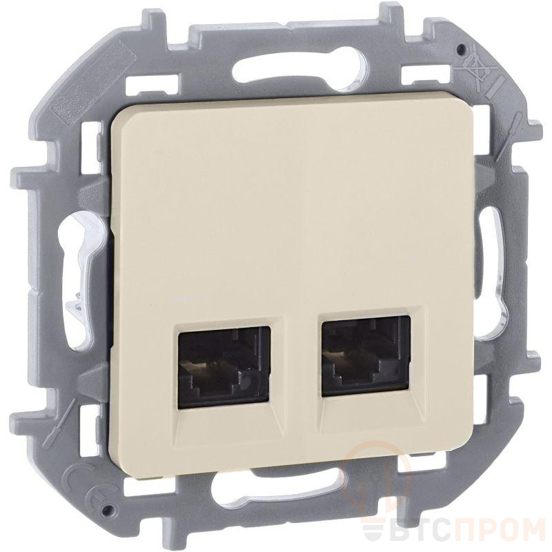 Розетка компьютерная двойная для скрытого монтажа Inspiria, 2 разъема RJ45 категория 5е UTP, цвет "Слоновая кость". Предназначена для быстрого подключения персональных компьютеров, принтеров, роутеров и другого оборудования к информационным сетям категории 5е со скоростью передачи данных до 1000 Мбит/с. Возможно прямое подключение 2 устройств и 2 кабелей.