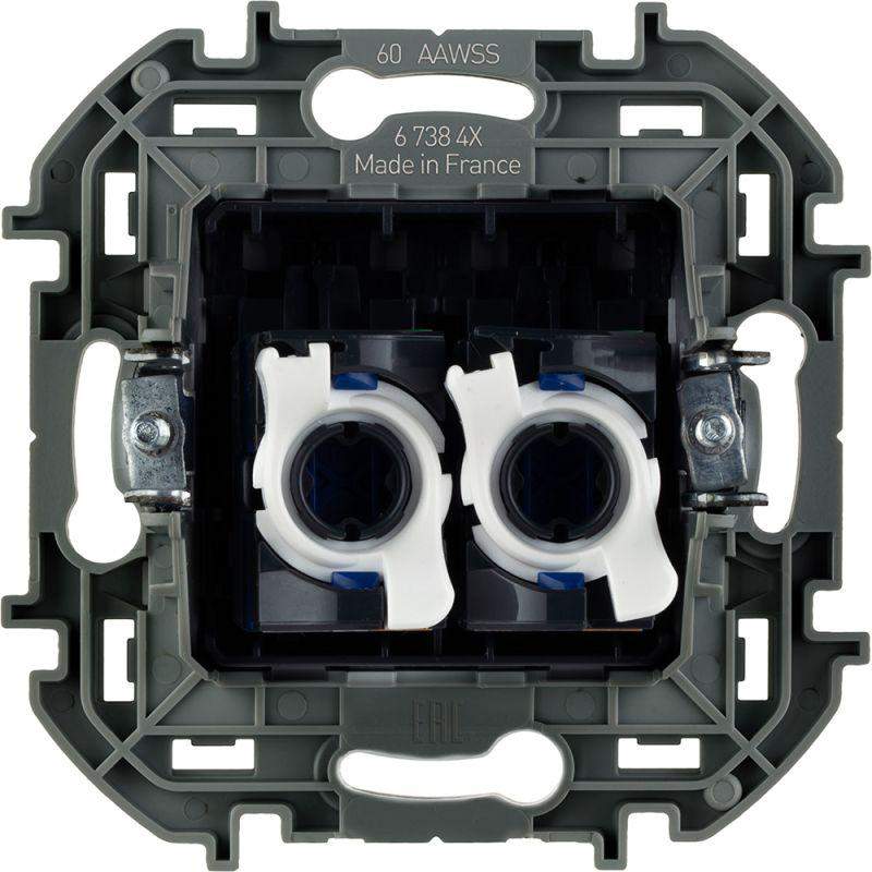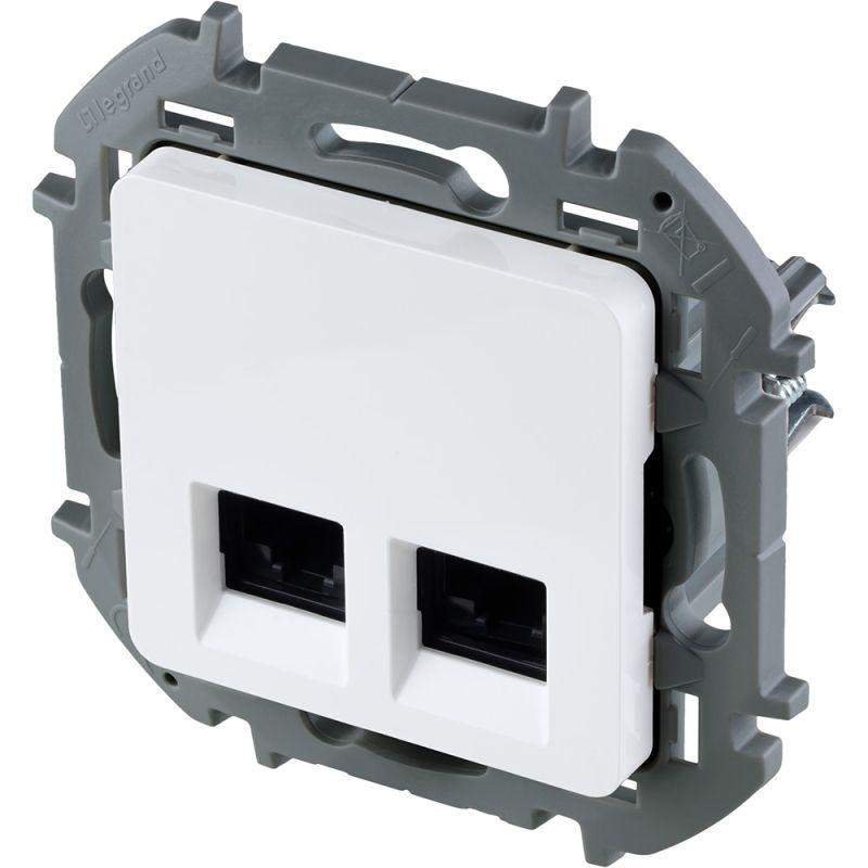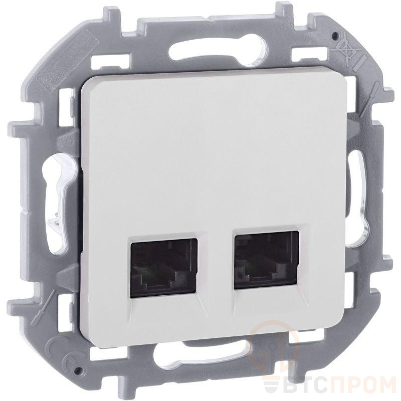 Розетка компьютерная двойная для скрытого монтажа Inspiria, 2 разъема RJ45 категория 6 UTP, цвет "Белый". Предназначена для быстрого подключения персональных компьютеров, принтеров, роутеров и другого оборудования к информационным сетям категории 6 со скоростью передачи данных 1 Гб/сек. Подходит для использования в сетях категории 5е. Возможно прямое подключение 2 устройств и 2 кабелей.