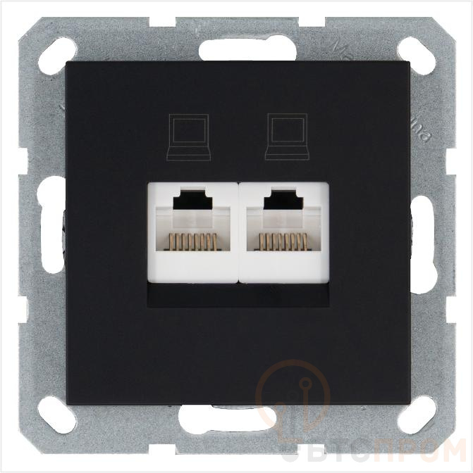 –Розетка компьютерная 2-м RJ45 IP20 кат. 5E механизм черн. матов. soft touch Jasmart G6106PB