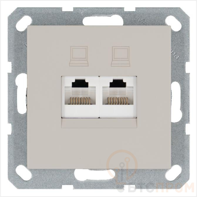 Розетка компьютерная 2-м RJ45 IP20 кат. 5E механизм тауп Jasmart G6106T фото в каталоге от BTSprom.by