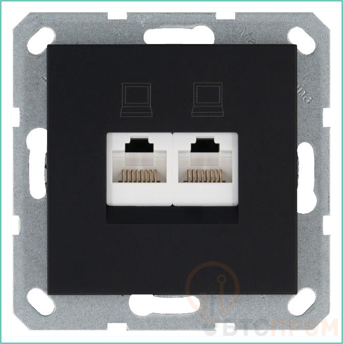 –Розетка компьютерная 2-м RJ45 IP20 кат. 6 механизм черн. матов. soft touch Jasmart G6108PB