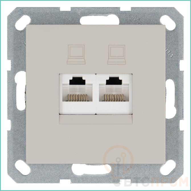 Розетка компьютерная 2-м RJ45 IP20 кат. 6 механизм тауп Jasmart G6108T фото в каталоге от BTSprom.by
