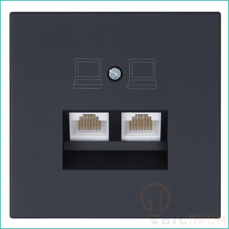 Розетка компьютерная 2-м СП RJ45 FD кат.5E с накладкой механизм черн. матов. soft touch Jasmart FD6106PBM