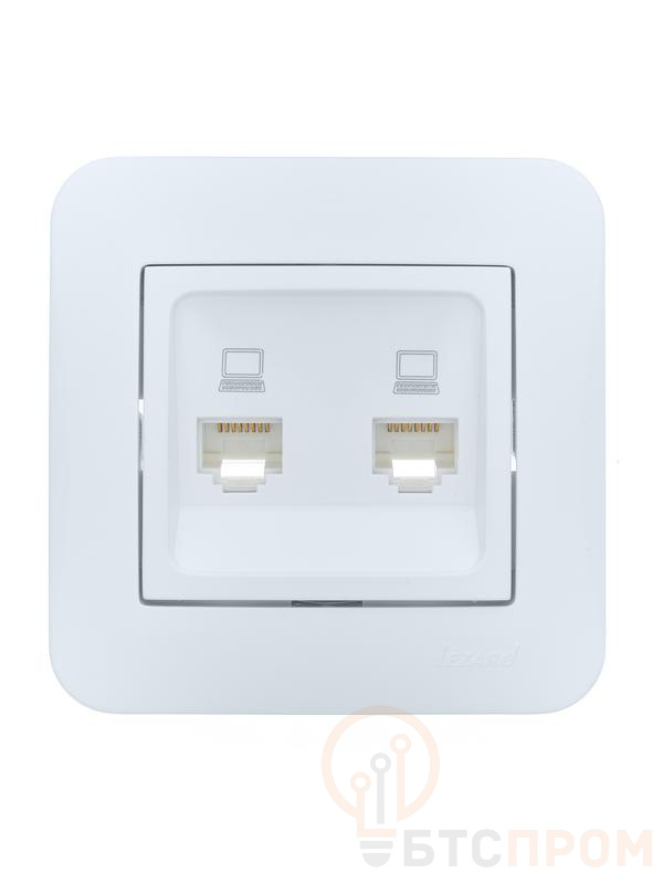 Розетка компьютерная 2-м СП ASTI IP20 RJ45 в сборе бел. LEZARD 7081-0202-141 фото в каталоге от BTSprom.by