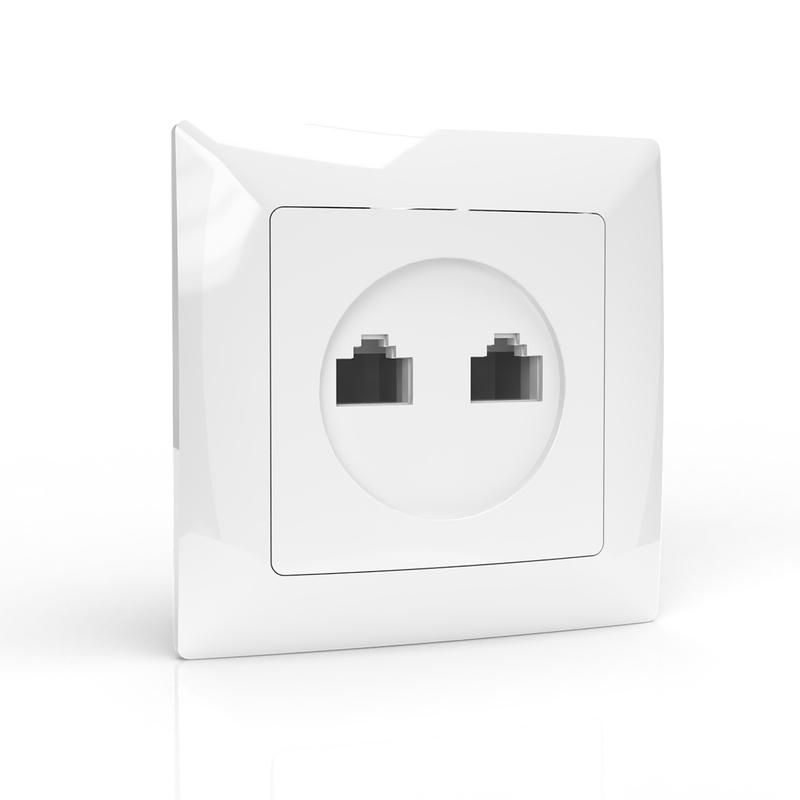 Устройство оснащено двумя стандартными портами RJ-45 категории 5e, что обеспечивает скорость передачи данных до 100 Мбит/с, поддерживая стабильное подключение компьютеров, принтеров, IP-камер и другого сетевого оборудования. Розетка поставляется в сборе, что значительно упрощает и ускоряет процесс монтажа. Контакты выполнены из высококачественной фосфористой бронзы, обеспечивающей надежное соединение и долгий срок службы. Монтаж осуществляется в стандартную монтажную коробку глубиной 60 мм.