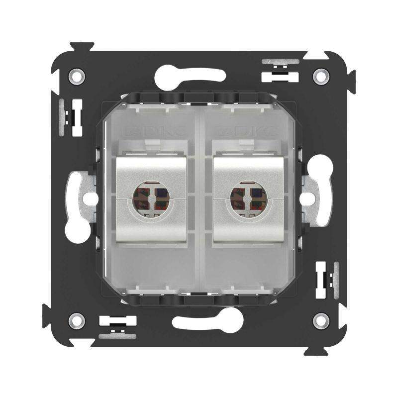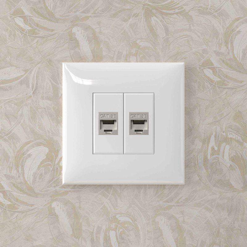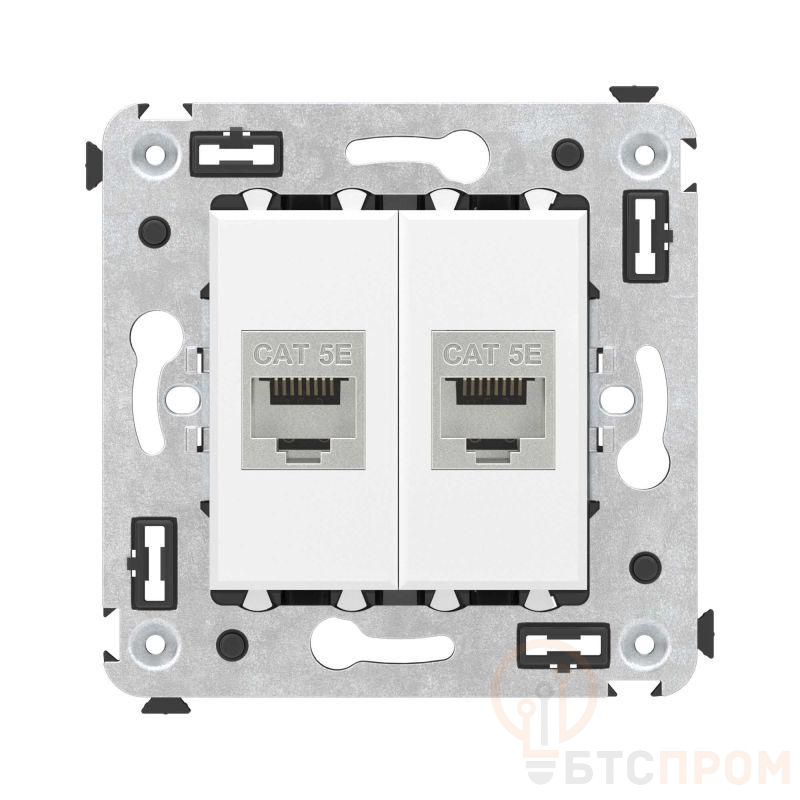 Компьютерная розетка двойная экранированная без шторки используется для подключения компьютерной техники и соединения с патч-панелью. Компьютерная розетка предназначена для скрытого монтажа в стену, поставляется в комплекте с суппортом. Розетка RJ-45 категории 5e – это наиболее популярная на сегодняшний день модель. Она позволяет организовать сеть с частотой 125 МГц и скоростью до 1000 Мбит/с. Материал – металл, термопласт. Пластиковые детали устройства имеют оттенок "Белое облако" – это чистый белый оттенок, сочетающийся с любыми цветами палитры "Avanti".