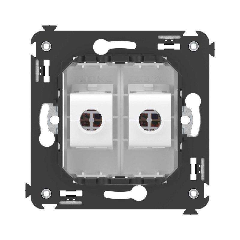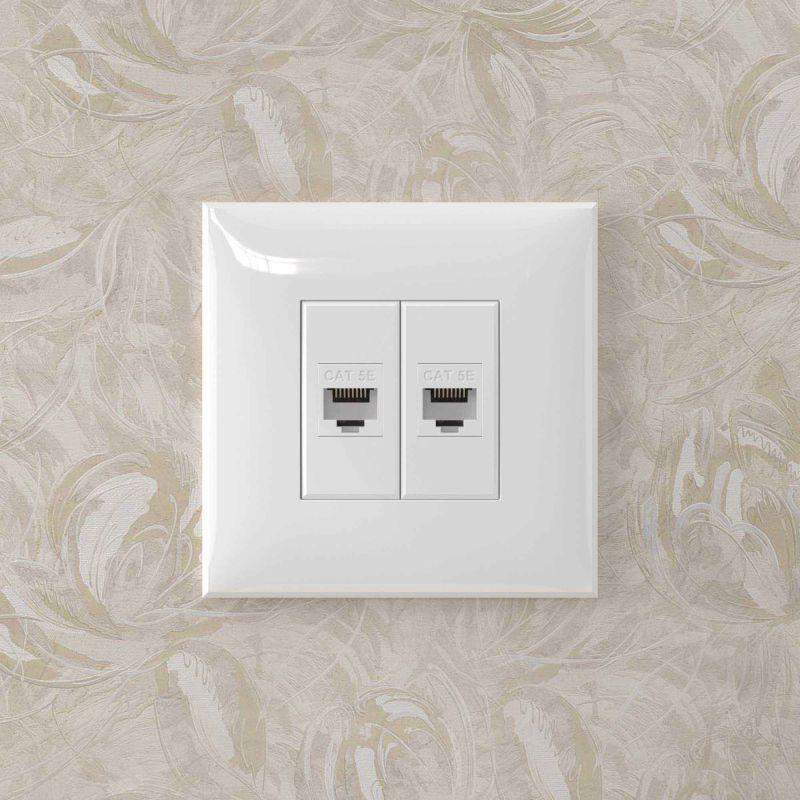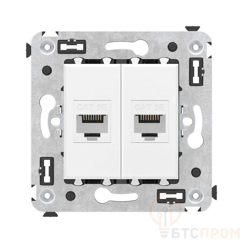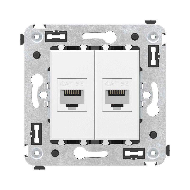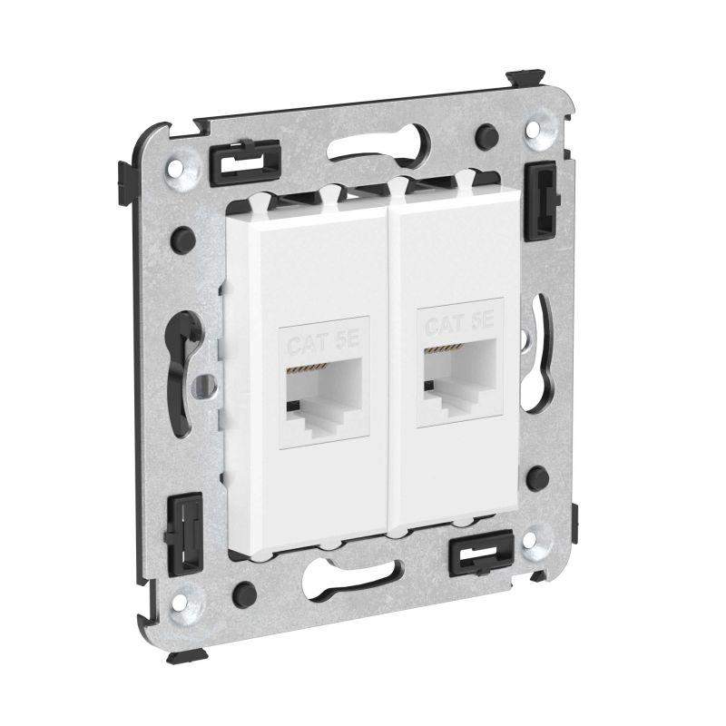 Компьютерная розетка двойная без шторки используется для подключения компьютерной техники и соединения с патч-панелью. Компьютерная розетка предназначена для скрытого монтажа в стену, поставляется в комплекте с суппортом. Розетка RJ-45 категории 5e – это наиболее популярная на сегодняшний день модель. Она позволяет организовать сеть с частотой 125 МГц и скоростью до 1000 Мбит/с. Материал – металл, термопласт. Пластиковые детали устройства имеют оттенок "Белое облако" – это чистый белый оттенок, сочетающийся с любыми цветами палитры "Avanti".