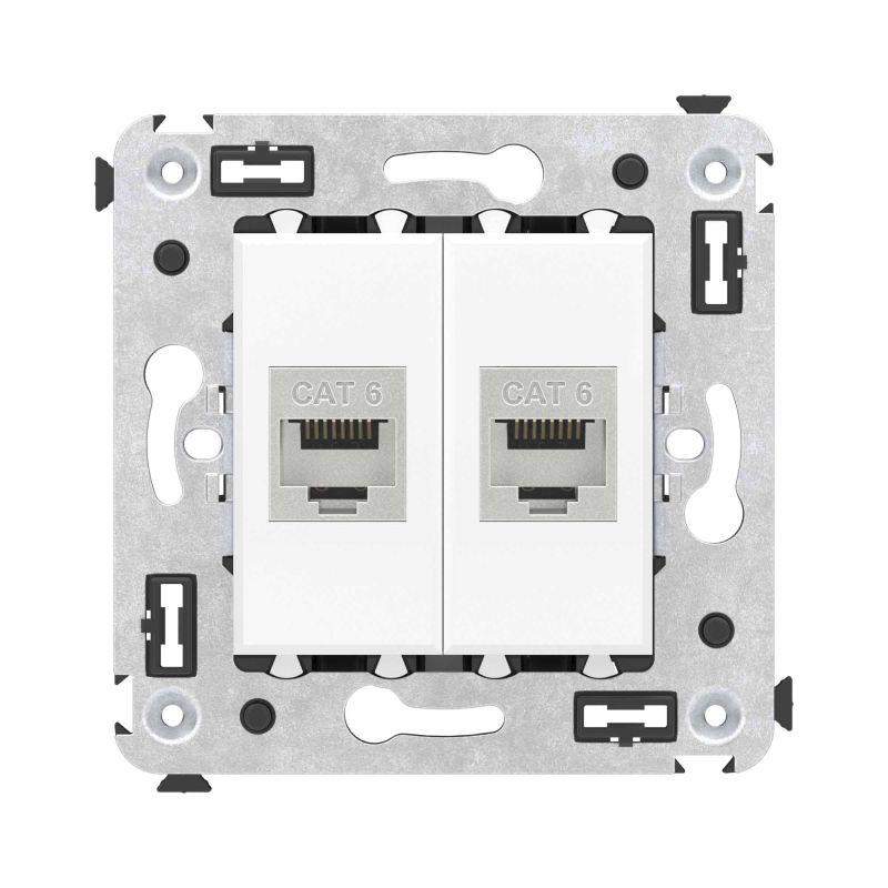 Компьютерная розетка двойная экранированная используется для подключения компьютерной техники и соединения с патч-панелью, предназначена для скрытого монтажа в стену, поставляется в комплекте с суппортом. Розетка RJ-45 категории 6 может использоваться для организации сетей с частотой до 250 МГц и передавать данные на большие расстояния. Материал розетки – металл, термопласт. Пластиковые детали изделия выполнены в цвете "Белое облако" – самом универсальном оттенке из цветовой гаммы ЭУИ "Avanti".