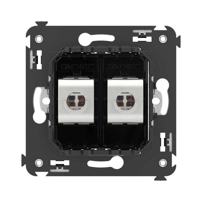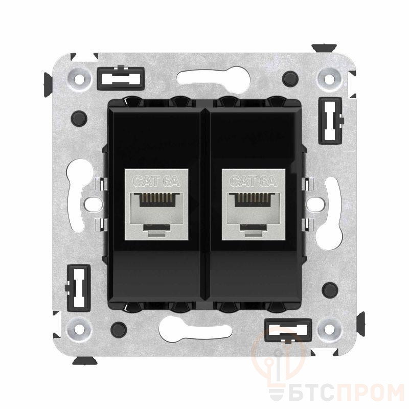 Компьютерная розетка двойная экранированная без шторки используется для подключения компьютерной техники и соединения с патч-панелью. Предназначена для скрытого монтажа в стену, поставляется в комплекте с суппортом. Розетка RJ-45 категории 6А может использоваться для организации сетей с частотой до 500 МГц и передавать данные до 10 Гбит/с. Материал розетки – металл, термопласт. Пластиковые детали изделия выполнены в цвете "Черный квадрат".