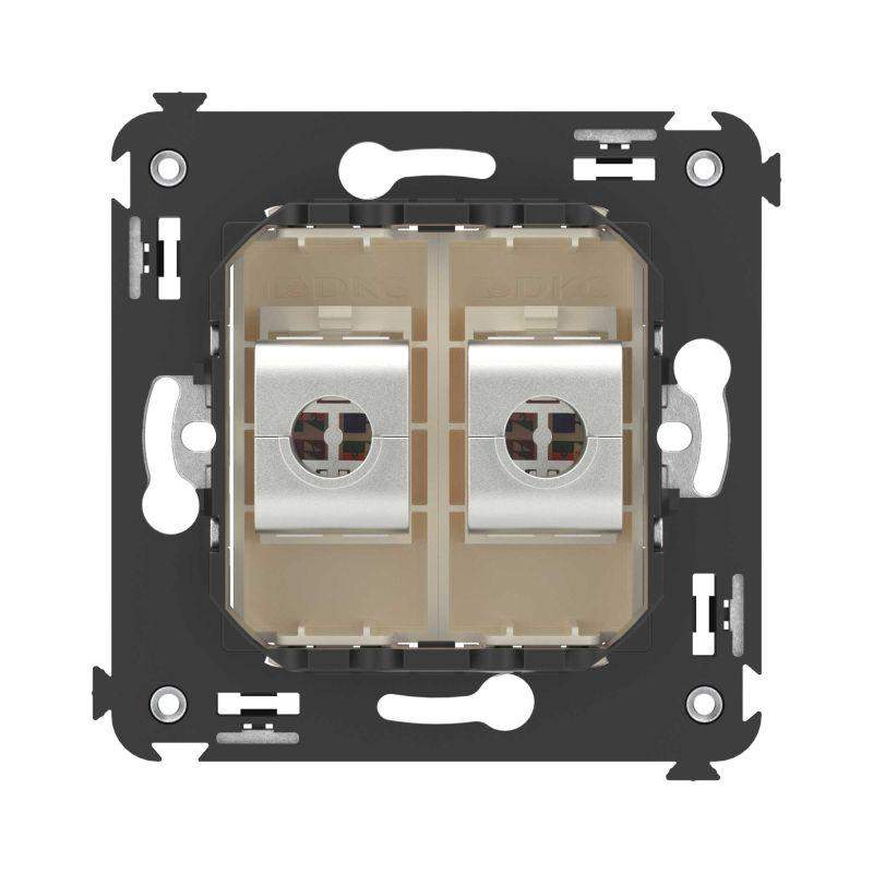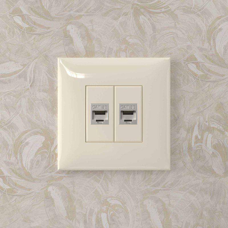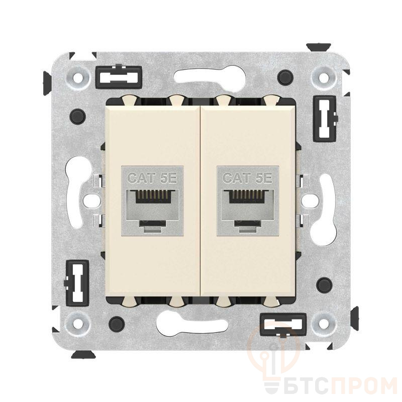 Компьютерная розетка двойная экранированная без шторки используется для подключения компьютерной техники и соединения с патч-панелью. Компьютерная розетка предназначена для скрытого монтажа в стену, поставляется в комплекте с суппортом. Розетка RJ-45 категории 5e – это наиболее популярная на сегодняшний день модель. Она позволяет организовать сеть с частотой 125 МГц и скоростью до 1000 Мбит/с. Материал – металл, термопласт. Пластиковые детали устройства имеют оттенок "Ванильная дымка".
