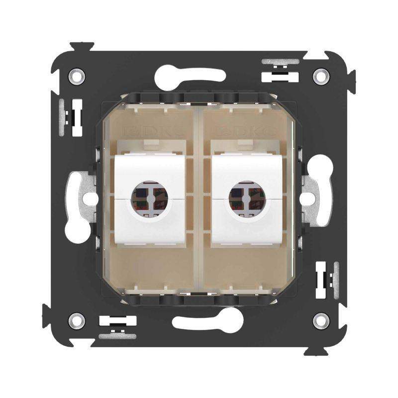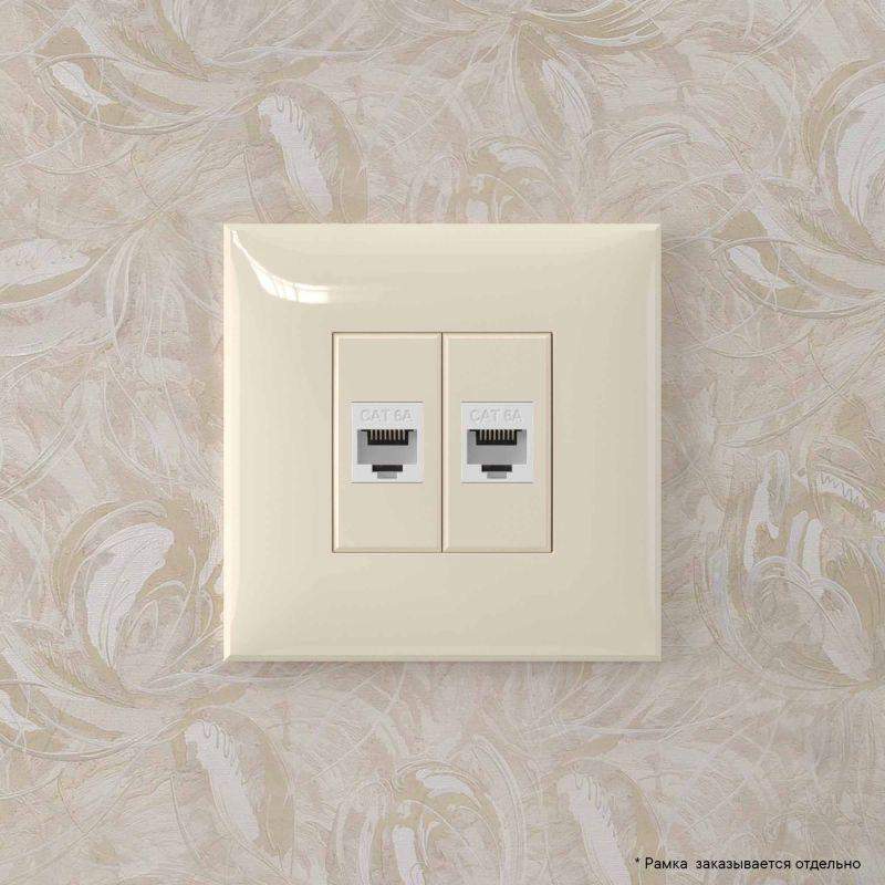 Компьютерная розетка двойная без шторки используется для подключения компьютерной техники и соединения с патч-панелью. Предназначена для скрытого монтажа в стену, поставляется в комплекте с суппортом. Розетка RJ-45 категории 6А может использоваться для организации сетей с частотой до 500 МГц и передавать данные до 10 Гбит/с. Материал розетки – металл, термопласт. Пластиковые детали изделия выполнены в цвете "Ванильная дымка".