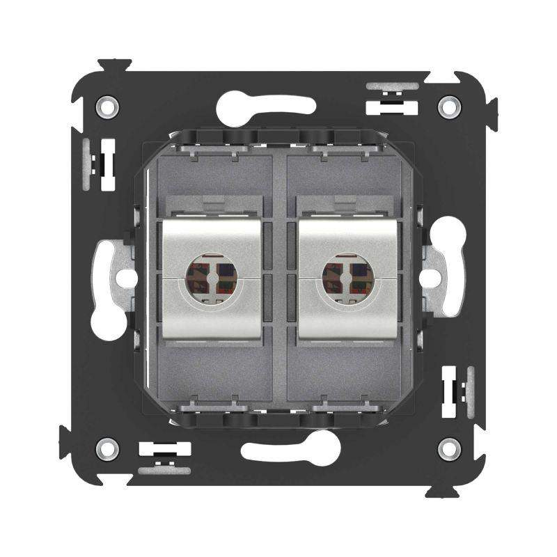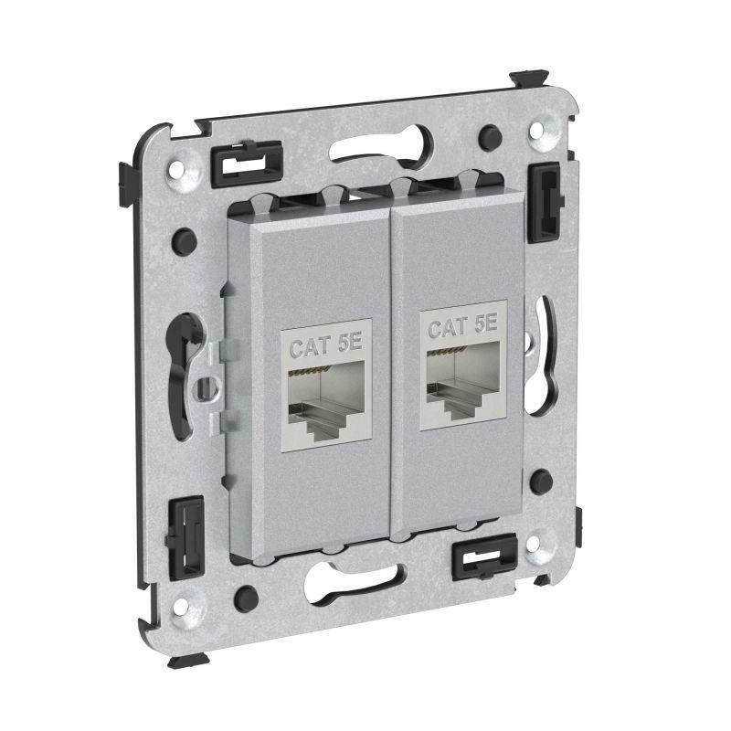 Компьютерная розетка двойная экранированная без шторки используется для подключения компьютерной техники и соединения с патч-панелью. Компьютерная розетка предназначена для скрытого монтажа в стену, поставляется в комплекте с суппортом. Розетка RJ-45 категории 5e – это наиболее популярная на сегодняшний день модель. Она позволяет организовать сеть с частотой 125 МГц и скоростью до 1000 Мбит/с. Материал – металл, термопласт. Пластиковые детали устройства имеют оттенок "Закаленная сталь".