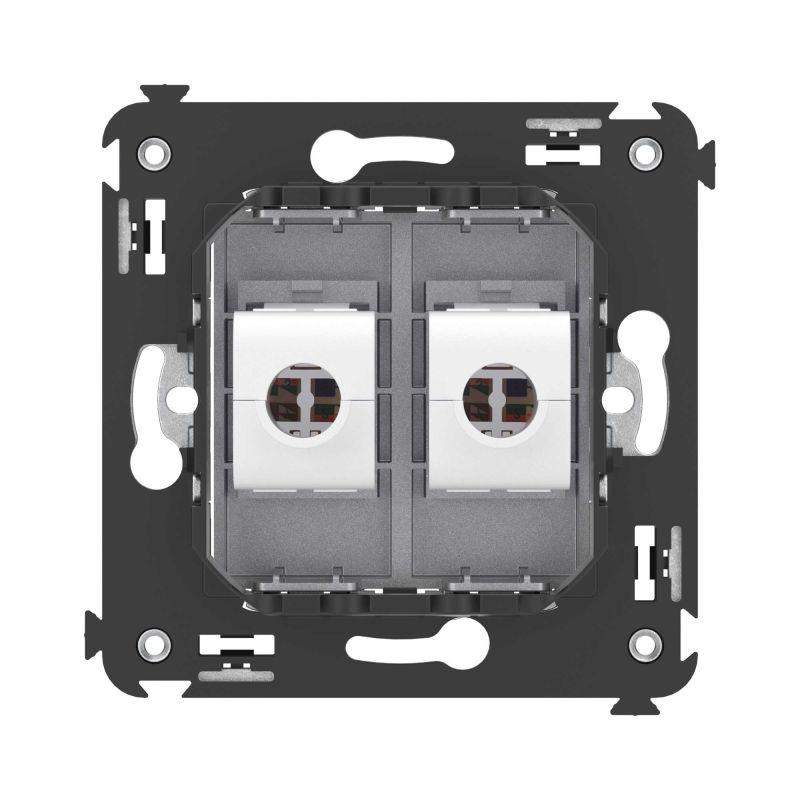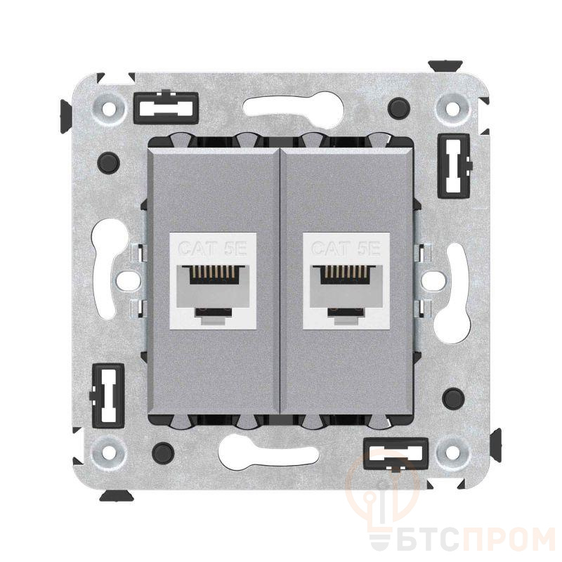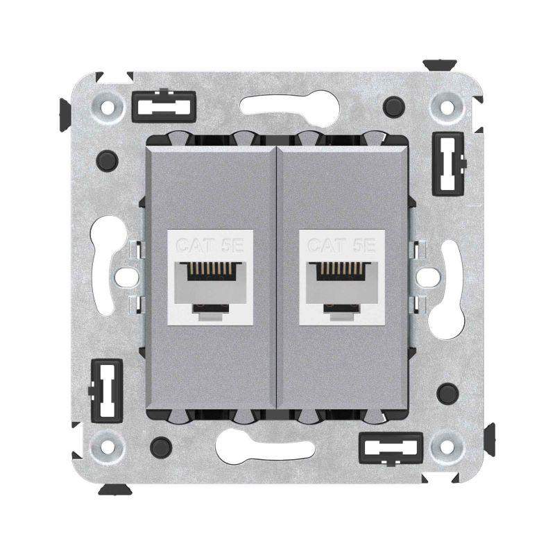 Компьютерная розетка двойная без шторки используется для подключения компьютерной техники и соединения с патч-панелью. Компьютерная розетка предназначена для скрытого монтажа в стену, поставляется в комплекте с суппортом. Розетка RJ-45 категории 5e – это наиболее популярная на сегодняшний день модель. Она позволяет организовать сеть с частотой 125 МГц и скоростью до 1000 Мбит/с. Материал – металл, термопласт. Пластиковые детали устройства имеют оттенок "Закаленная сталь".