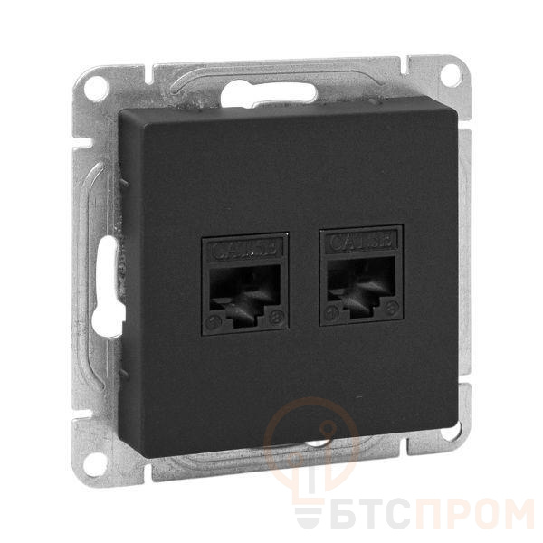 Розетка компьютерная 2-м СП Эпика RJ45 кат.5 механизм черн. EKF UP1-SOB-2RJ45-5 фото в каталоге от BTSprom.by