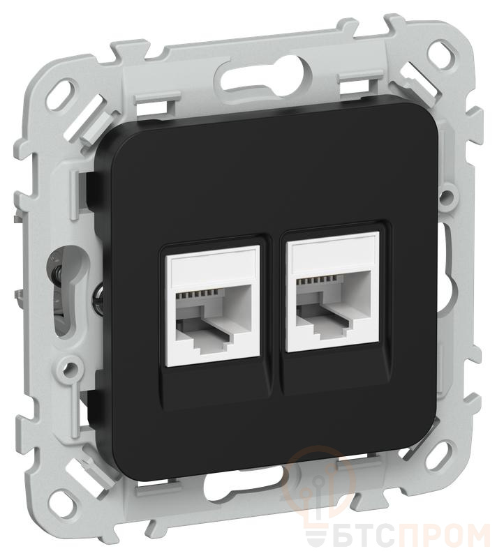 –Розетка компьютерная 2-м СП FLITE РК5е-2-0-ФлЧ RJ45 кат.5E UTP механизм черн. IEK FI-K22-1-K02