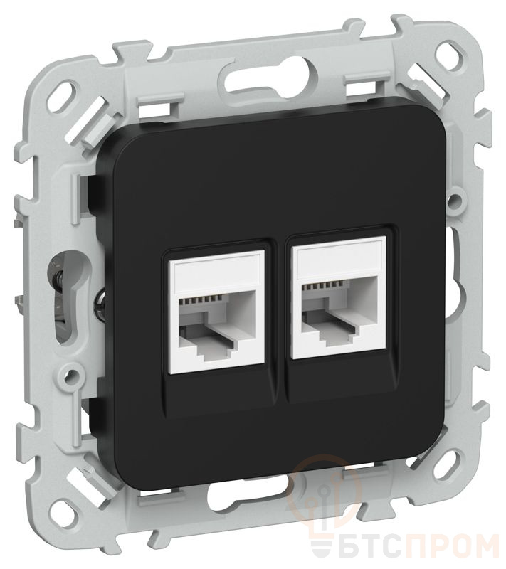 Розетка компьютерная 2-м СП FLITE РК6-2-0-ФлЧ RJ45 кат.6 UTP механизм черн. IEK FI-K22-2-K02 фото в каталоге от BTSprom.by