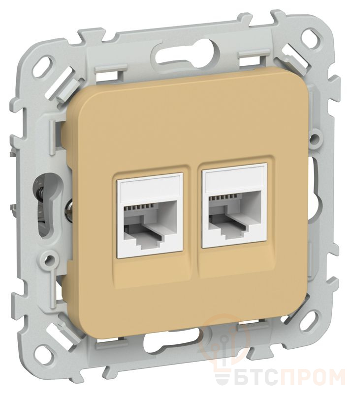 –Розетка компьютерная 2-м СП FLITE РК6-2-0-ФлШм RJ45 кат.6 UTP механизм шамуа IEK FI-K22-2-K89