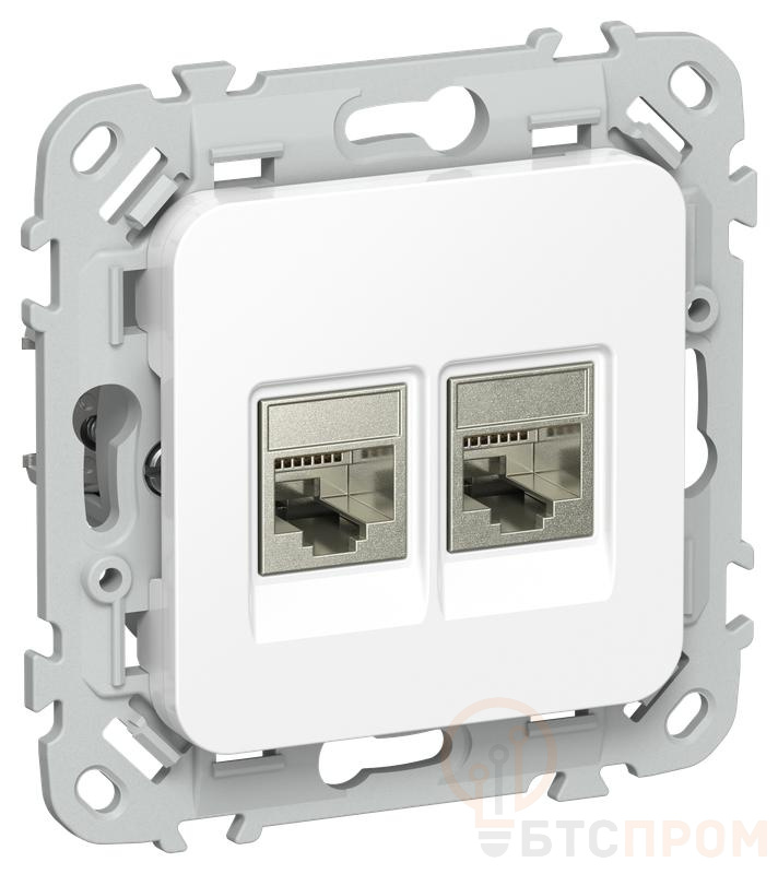 Розетка компьютерная 2-м СП FLITE РК6-2-1-ФлБ RJ45 кат.6 STP механизм бел. IEK FI-K21-2-K01 фото в каталоге от BTSprom.by