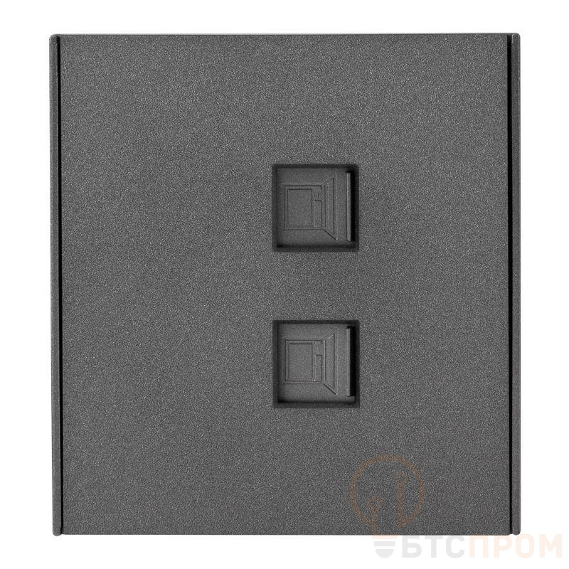 Розетка оснащена двумя портами RJ45, что позволяет подключить к одной точке два сетевых устройства, например, компьютер и IP-телефон. Контакты позолочены, что обеспечивает стабильное соединение и высокую скорость передачи данных до 1 Гбит/с на частоте 250 МГц, соответствующей стандарту Cat.6. Используется экранированная конструкция (тип FTP/STP) для защиты от электромагнитных помех.