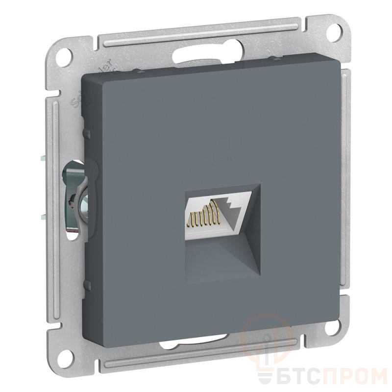 Механизм Systeme Electric (ранее Schneider Electric) серии AtlasDesign в цвете грифель розетки компьютерной с разъёмом RJ45 категория 5е предназначен для удобного и быстрого подключения вашего компьютера к локальной вычислительной сети. - Лицевые детали из качественного ABS-пластика, устойчивого к царапинам и УФ-излучению. - Усиленные прямые монтажные лапки для лучшей фиксации механизма в монтажной коробке.