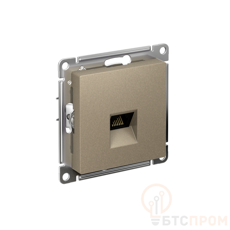 Механизм Systeme Electric (ранее Schneider Electric) серии AtlasDesign в цвете шампань розетки компьютерной с разъёмом RJ45 категории 6А предназначен для удобного и быстрого подключения вашего компьютера к локальной вычислительной сети. - Обладает высокой скоростью передачи данных до 10 Гбит/с, диапазон частоты до 500 МГц. - Лицевые детали из качественного ABS-пластика, устойчивого к царапинам и УФ-излучению. - Усиленные прямые монтажные лапки для лучшей фиксации механизма в монтажной коробке.