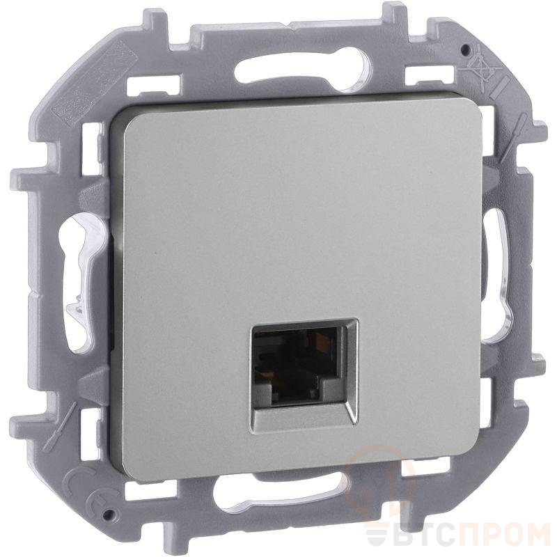 Розетка компьютерная для скрытого монтажа Inspiria, 1 разъем RJ45 категория 5е UTP, цвет "Алюминий". Предназначена для быстрого подключения персональных компьютеров, принтеров, роутеров и другого оборудования к информационным сетям категории 5е со скоростью передачи данных до 1000 Мбит/с. Возможно прямое подключение 1 устройства.