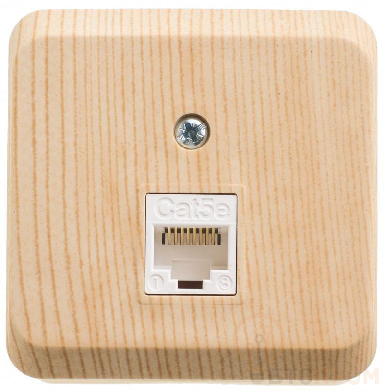 Розетка Systeme Electric (ранее Schneider Electric) ЭТЮД (сосна, открытой установки) компьютерная RJ45 категория 5е используется для удобного и быстрого подключения устройств к сети Интернет. Данное изделие подходит для любых помещений. Розетка проста в установке, надежна и прочна в применении. Изделия цвета Сосна обладают уникальным рисунком, напоминающим древесный сруб. Сделано в России.