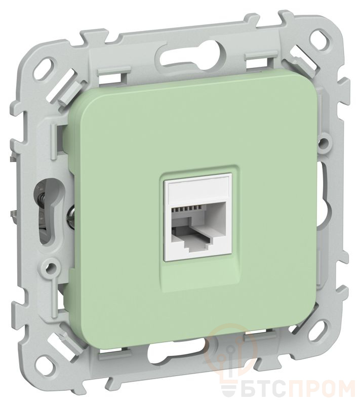 –Розетка компьютерная СП FLITE РК6-1-0-ФлФ RJ45 кат.6 UTP механизм фисташк. IEK FI-K12-2-K93