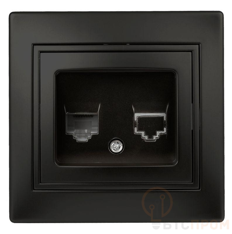 Розетка RJ45 серии Intro Plano скрытой установки цвет антрацит 1-303-05. Номинальные характеристики . Розетка выполнена из термопласта, укомплектована одноместной рамкой. Для установки 2-х и более устройств в несколько подрозетников в ряд дополнительно используются многоместные рамки: 2-х постовая - 1-502-хх, 3-х постовая 1-503-хх, 4-х постовая - 1-504-хх (где хх - цветовой код: 01 - белый, 02 - слоновая кость, 03 - алюминий, 04 - шампань, 05 - антрацит, 10 - венге, 11 - сосна).